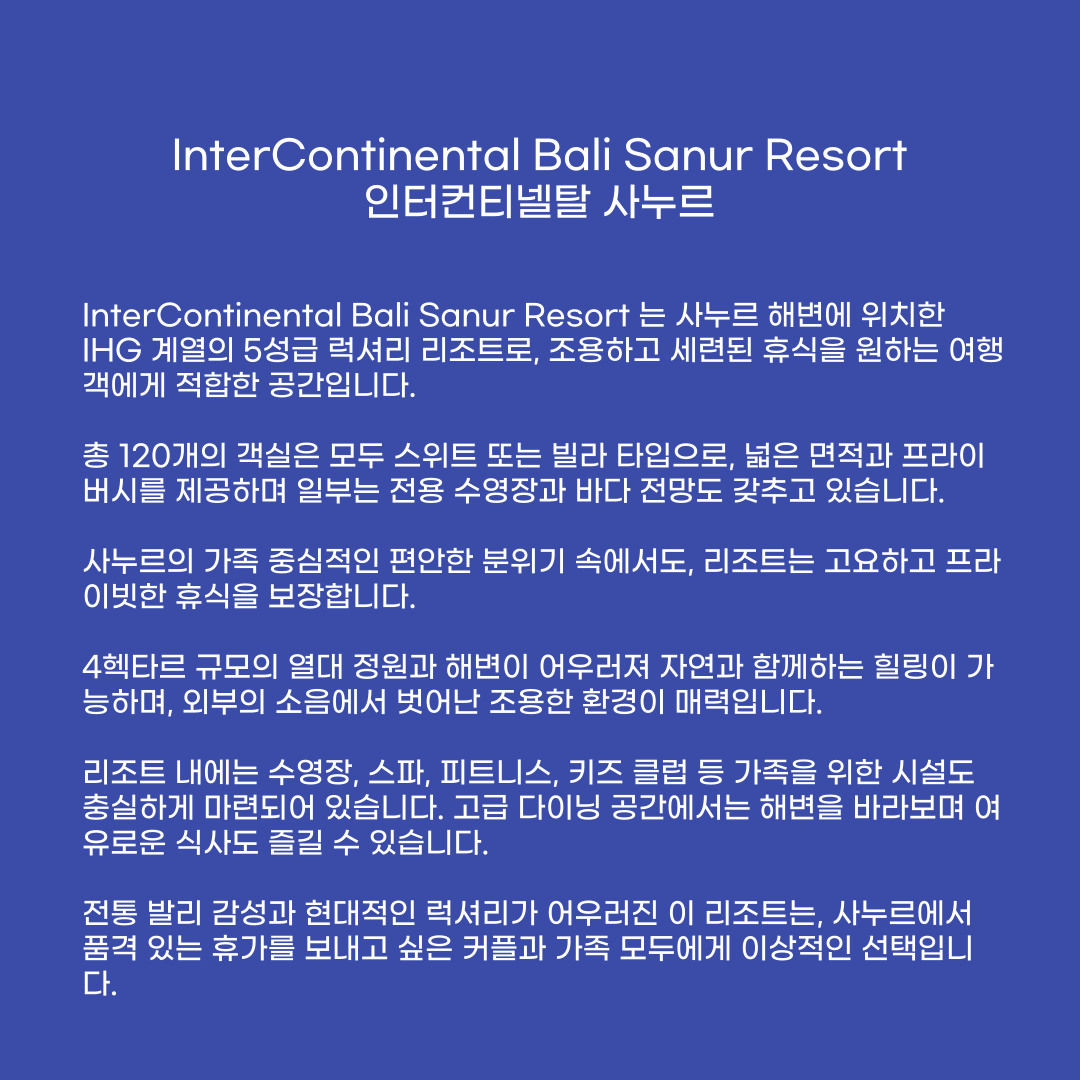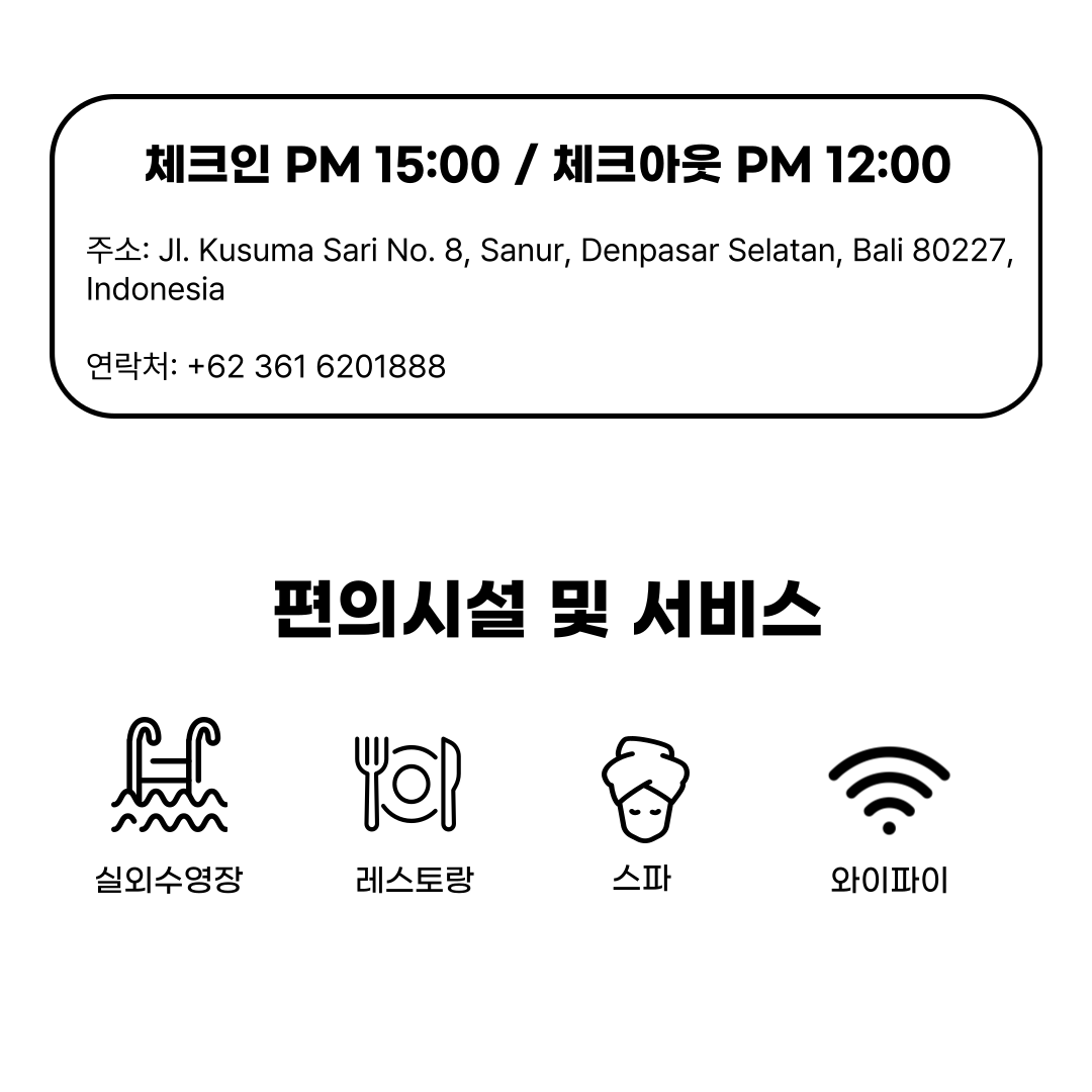 -패밀리 홀리데이 : 4박이상 예약시, 무료 30분 복&어깨 마사지(2인),키즈클럽 무료 이용(내니 서비스 이용시 추가금 발생), 부모님과 동반시 11.99세 미만 아동 키즈 메뉴 무료